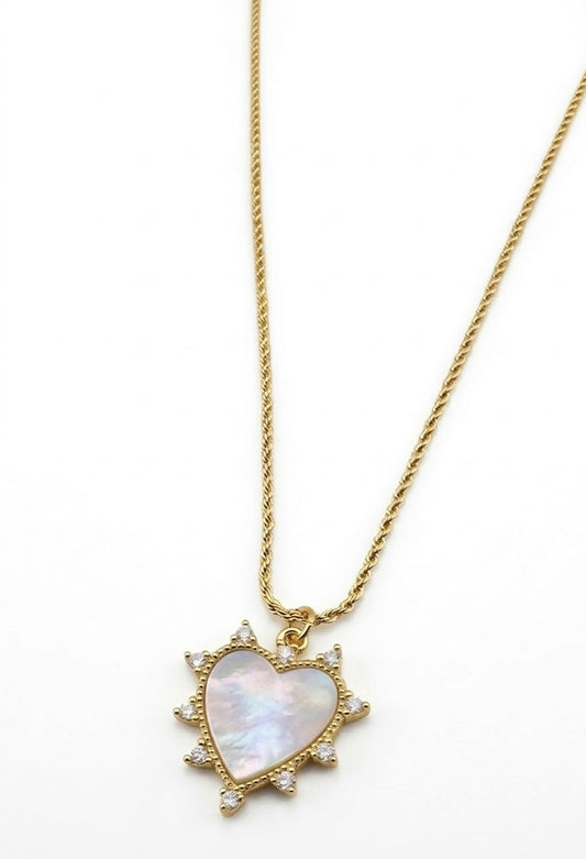 Mother of Pearl Heart Charm Necklace