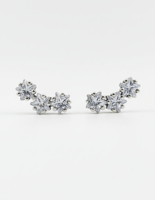 Triple Star Stud Earrings with CZ
