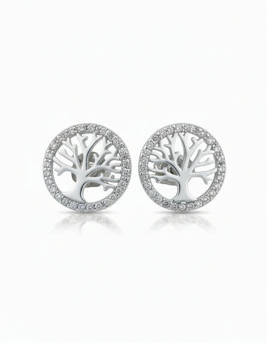 Tree of Life Stud Earrings with CZ