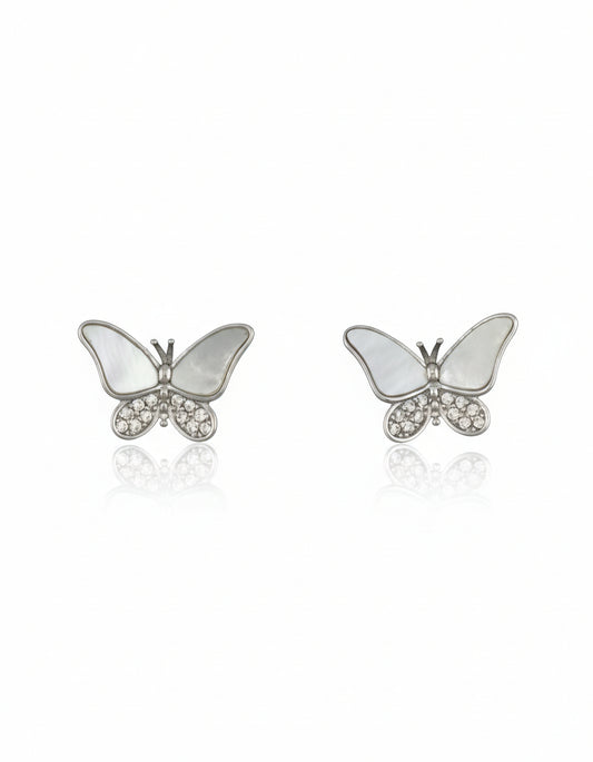 White Pearl Butterfly Studs with CZ