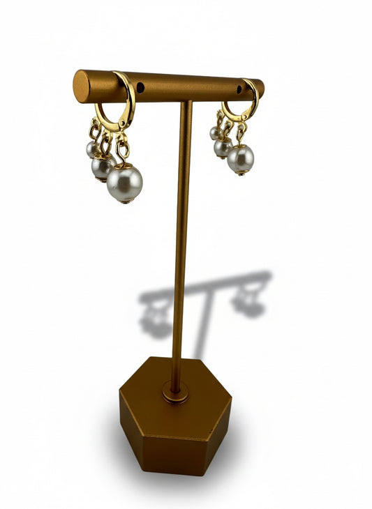 Triple Pearl Cascade Hoops