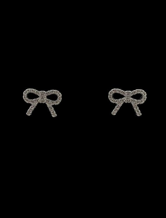 Ribbon-Shaped Stud Earrings with CZ