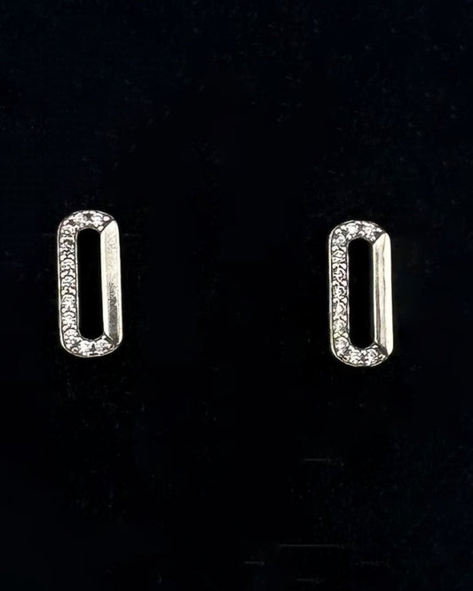 Round Rectangle-Shaped Stud Earrings with CZ