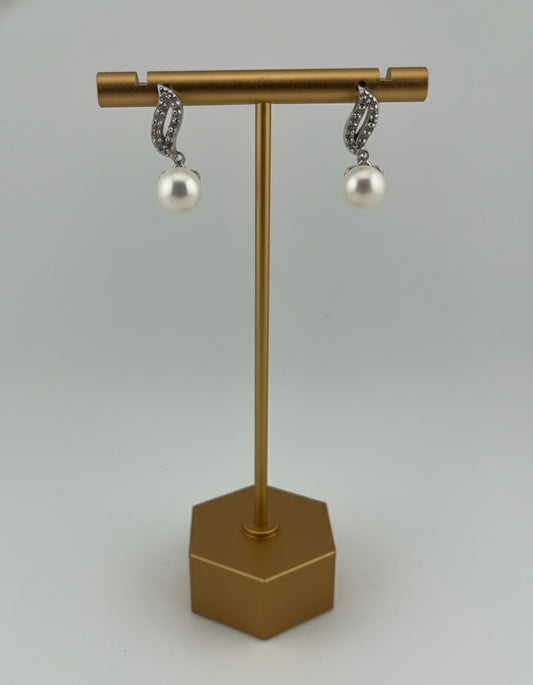 Drop Pearl Earrings with CZ