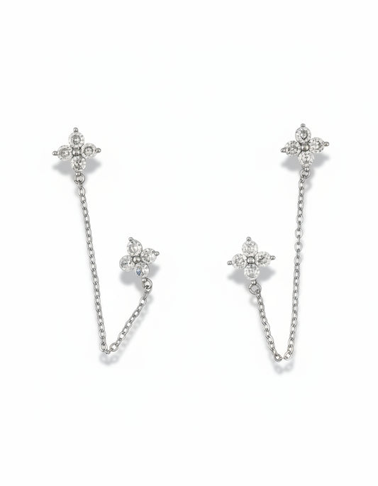 Double Piercing Flower Stud Earrings with CZ