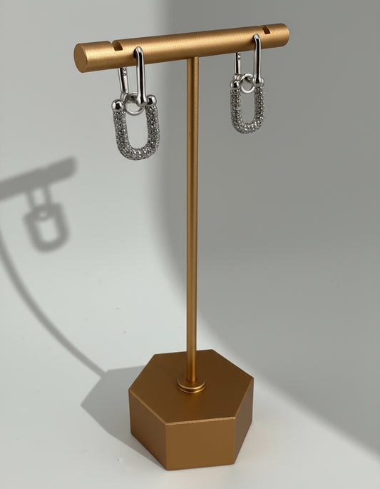 Paper Clip Chain Dangling Earrings with CZ