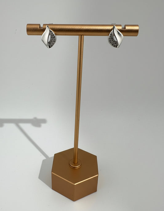 Leaf-Shaped Stud Earrings with CZ