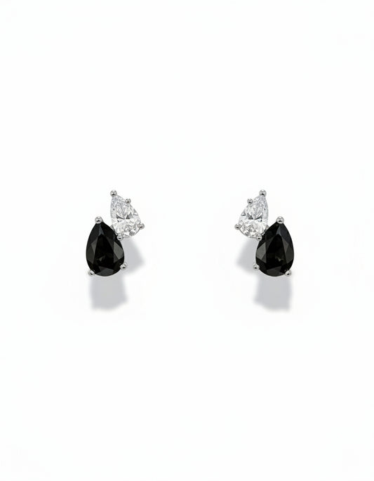 Black Stone and CZ Stud Earrings