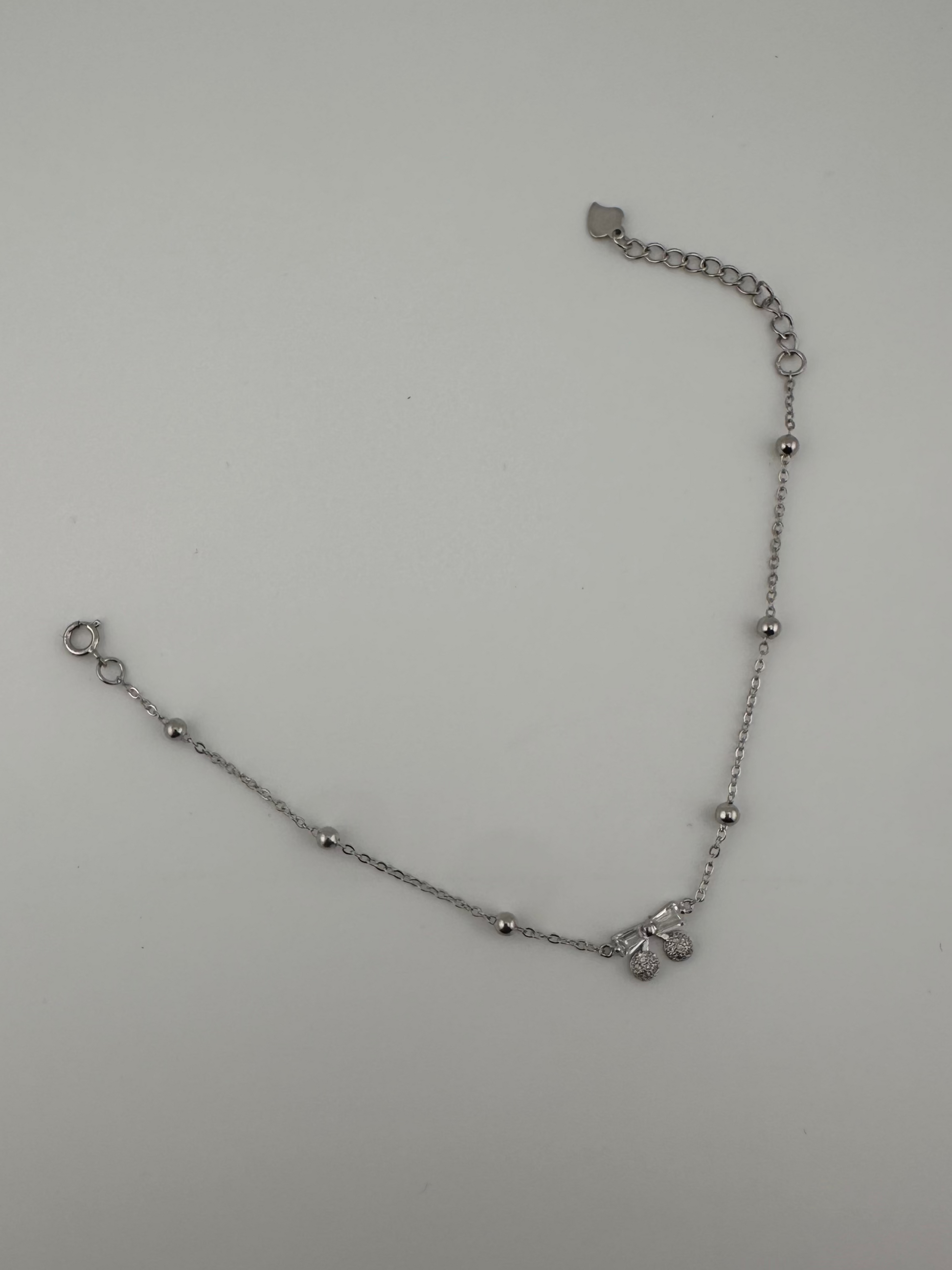 Sweet with a touch of sparkle, the Cherry Charm Bracelet features a delicate bow and cherry motif, both adorned with shimmering cubic zirconia and set in polished 925 sterling silver. Whimsical yet refined, this bracelet adds a playful elegance to your look — perfect for those who love a hint of fun in their fine jewelry.