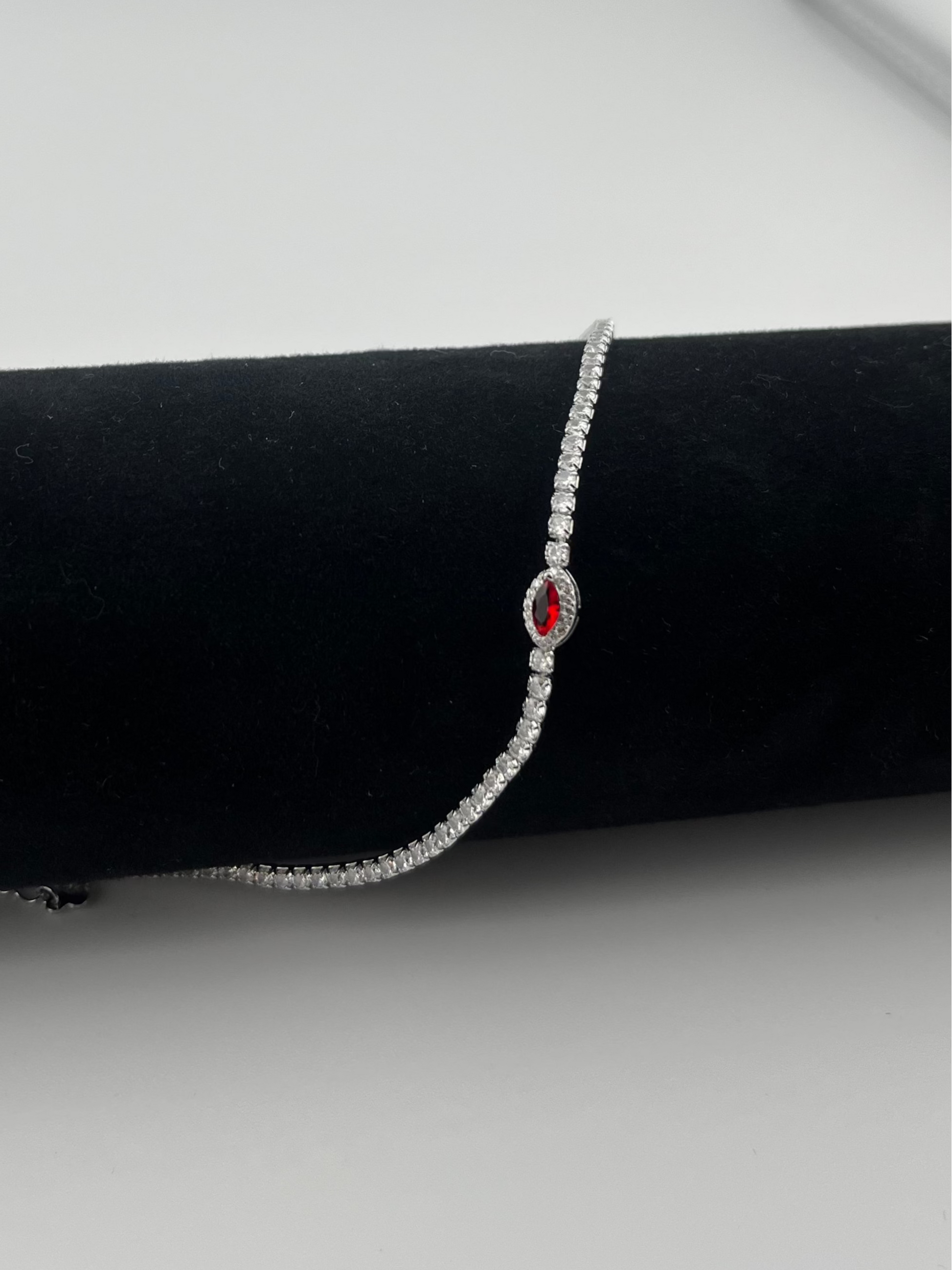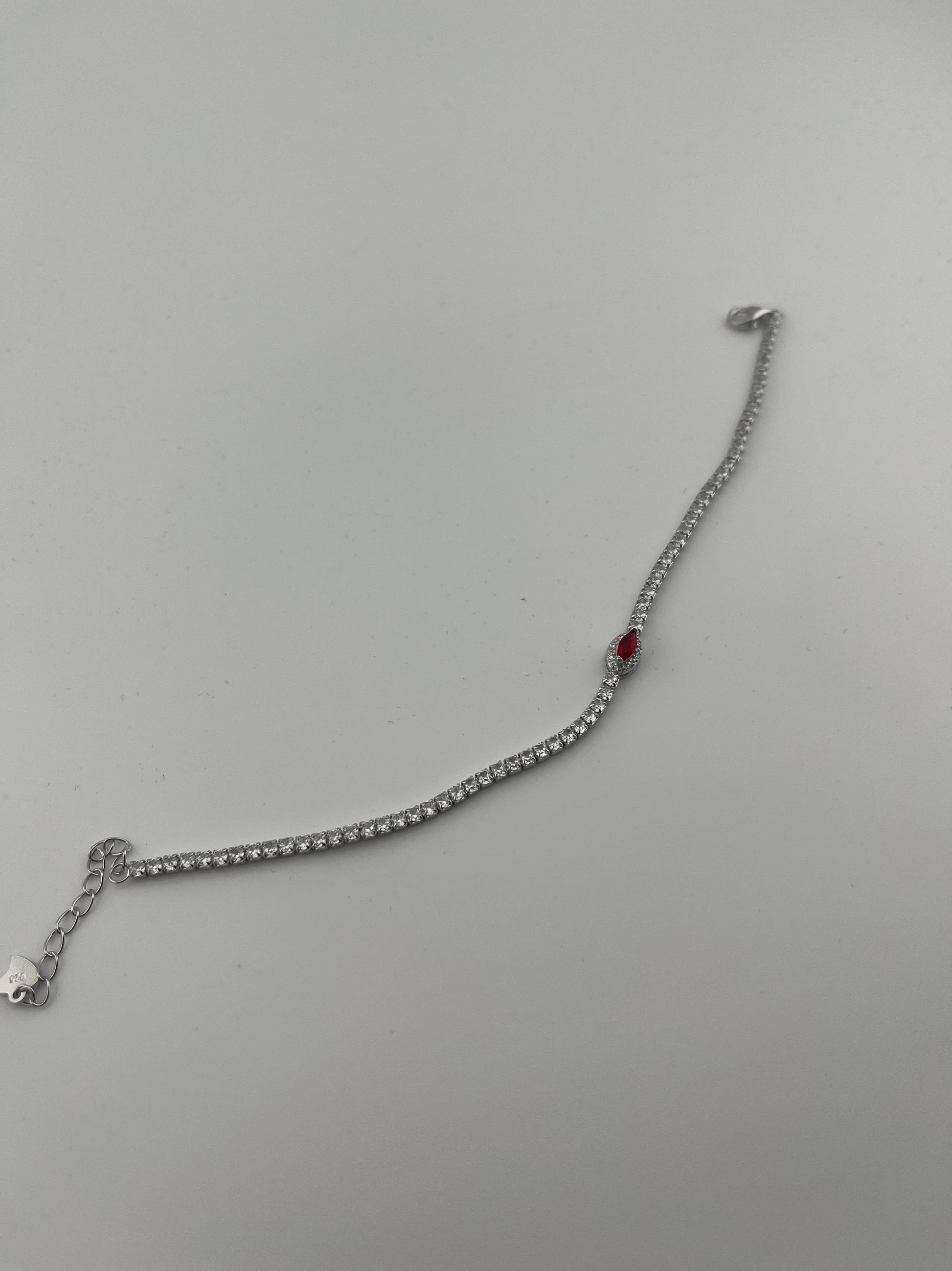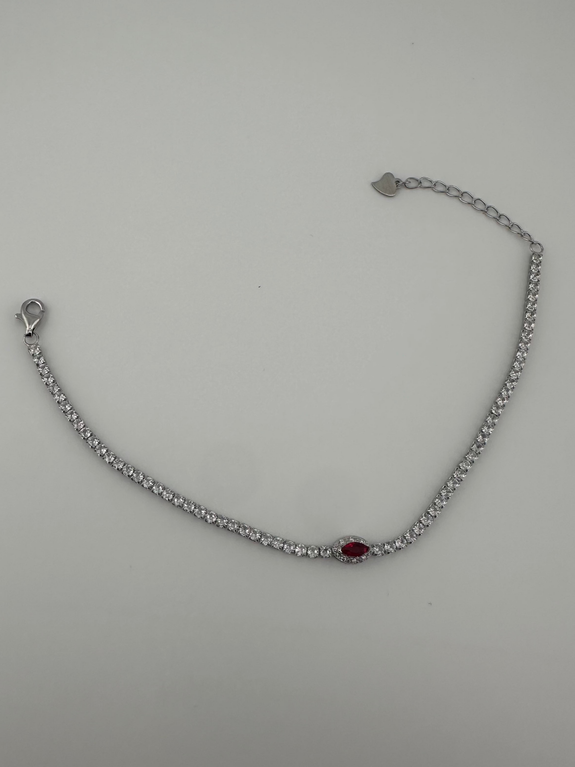 Bold meets elegant in the Crimson Spark Bracelet, featuring a striking red stone at its center, framed by shimmering cubic zirconia and set in radiant 925 sterling silver. This captivating piece symbolizes passion, strength, and beauty — the perfect accessory to add a touch of color and sophistication to any look.