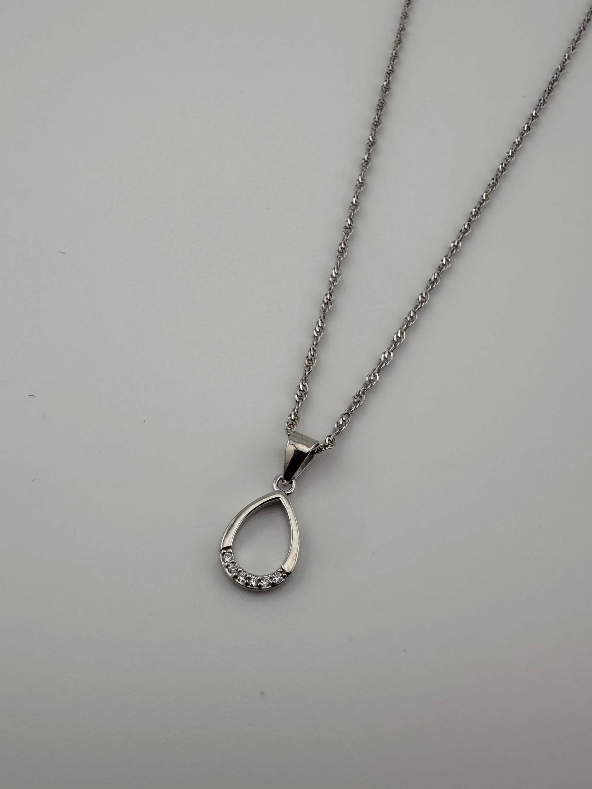 Elegant and timeless, Crystal Drop features an open teardrop design crafted in fine 925 sterling silver, accented with a sparkling cubic zirconia stone. This delicate, hypoallergenic necklace captures the beauty of simplicity with a touch of shimmer — perfect for everyday grace or special occasions.
