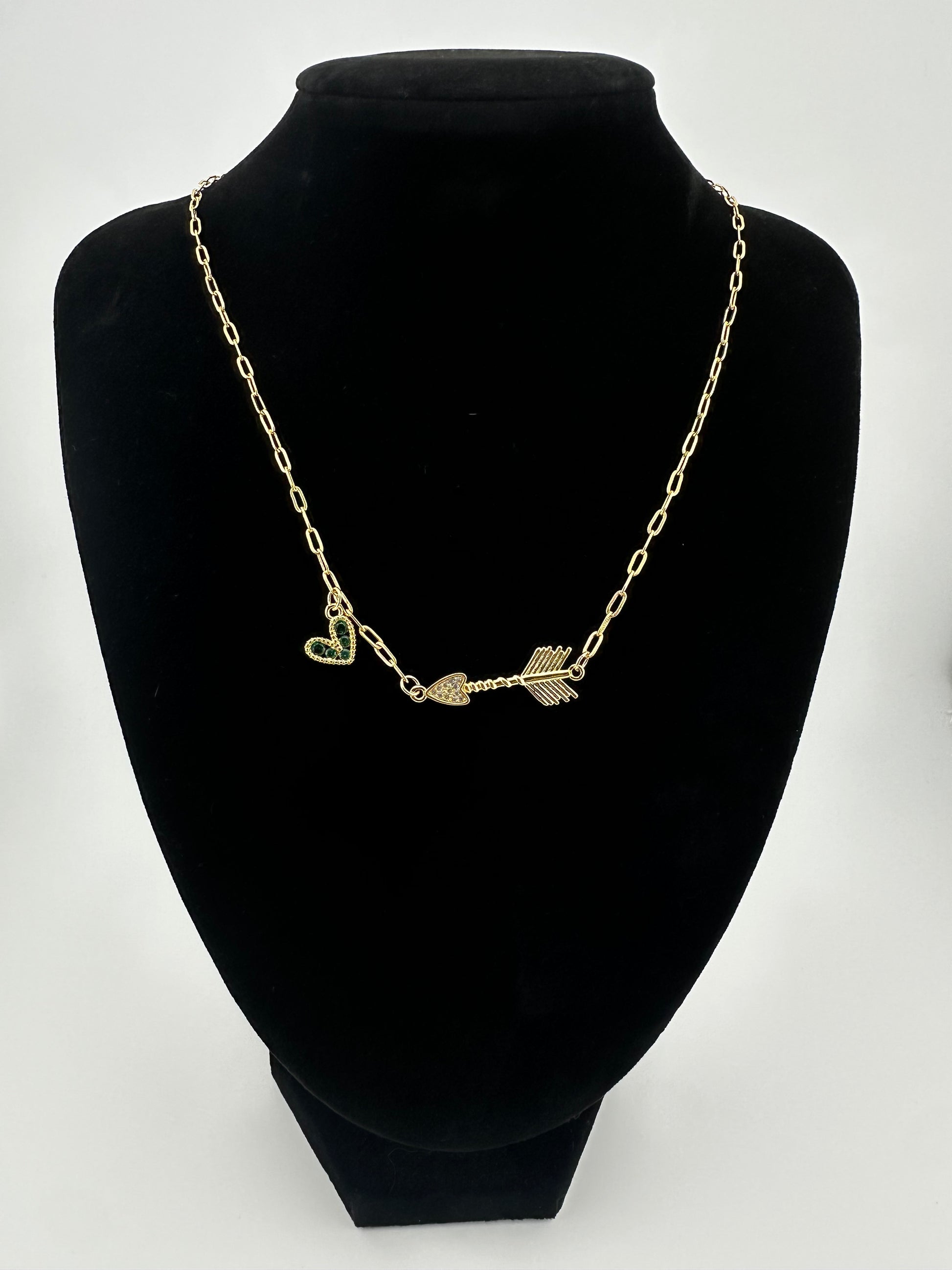 Fall in love with the Cupid Link Necklace — a custom 18K gold-filled piece from Arani Collections. Featuring a sleek paperclip chain, a delicate arrow charm, and a vibrant green heart, it symbolizes love, direction, and individuality.