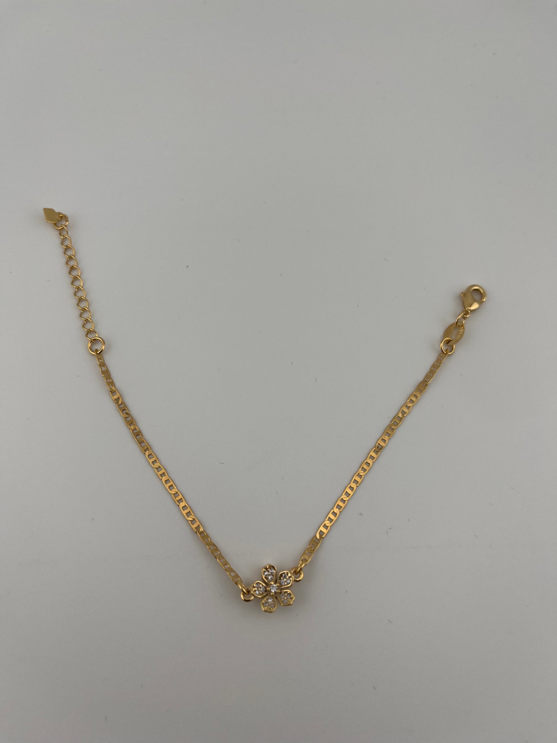 Delicate and radiant, the Golden Bloom Bracelet features a beautifully detailed flower centerpiece crafted in luminous 18k gold-filled metal. Symbolizing growth and beauty, this elegant design adds a touch of natural charm and timeless femininity to any outfit — perfect for both everyday wear and special moments.
