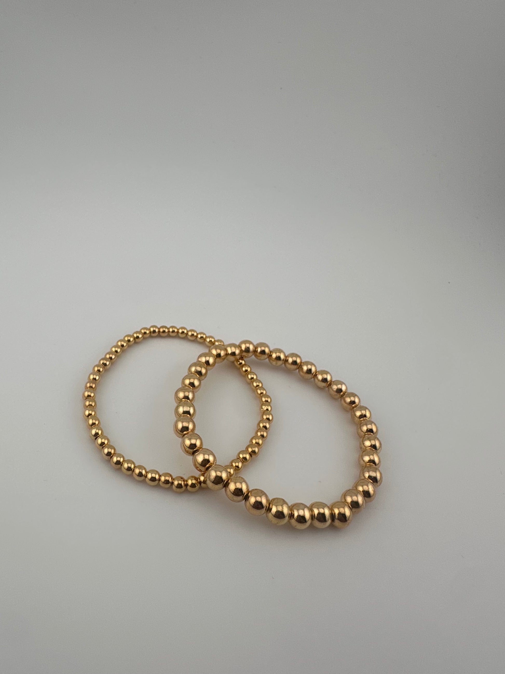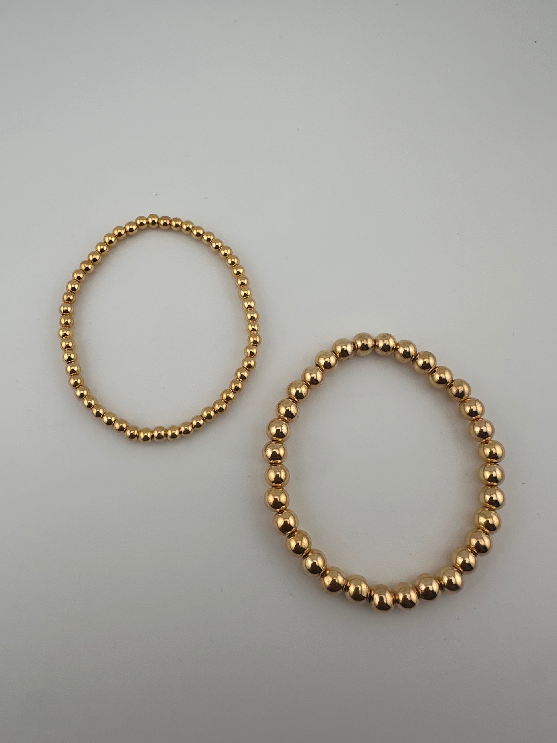 Chic and radiant, the Golden Gleam Bead Bracelet features smooth, polished beads crafted from 18k gold-filled metal, offering a timeless touch of shine and texture. Whether worn solo for subtle elegance or stacked for a bold statement, this bracelet brings effortless sophistication to any look.