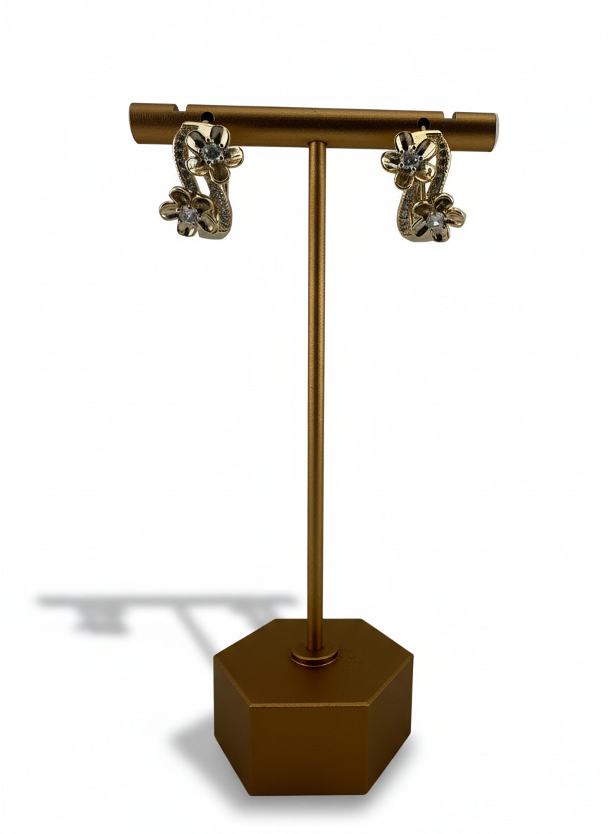 Add a touch of floral elegance to your look with these 18K gold-filled 2-flower hoop earrings. Each hoop features two sparkling flower designs adorned with brilliant cubic zirconia, giving you a perfect mix of charm and shine. Lightweight, hypoallergenic, and ideal for everyday glam or special moments.