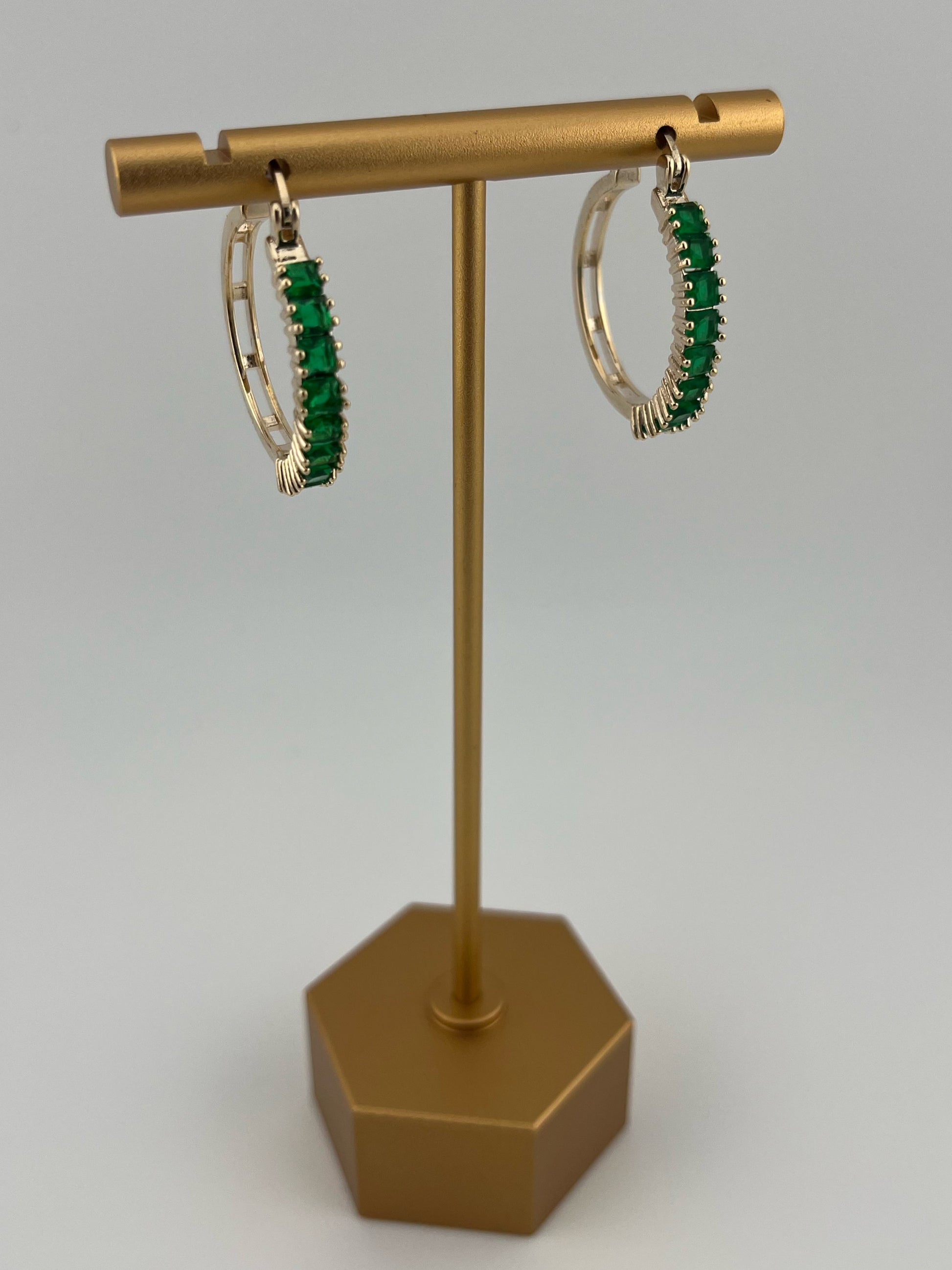 Add a pop of color and sophistication to your look with these stunning 18k gold-filled baguette hoop earrings, featuring a beautiful mix of green and silver stones. The sleek, modern hoop design is enhanced by the striking baguette-cut stones, which catch the light with every movement, creating a dazzling effect. The rich green stones bring a vibrant touch, while the silver accents add balance and elegance. Crafted from durable 18k gold-filled metal, these earrings offer both timeless beauty and long-lasting shine, making them the perfect statement piece for both everyday wear and special occasions.
