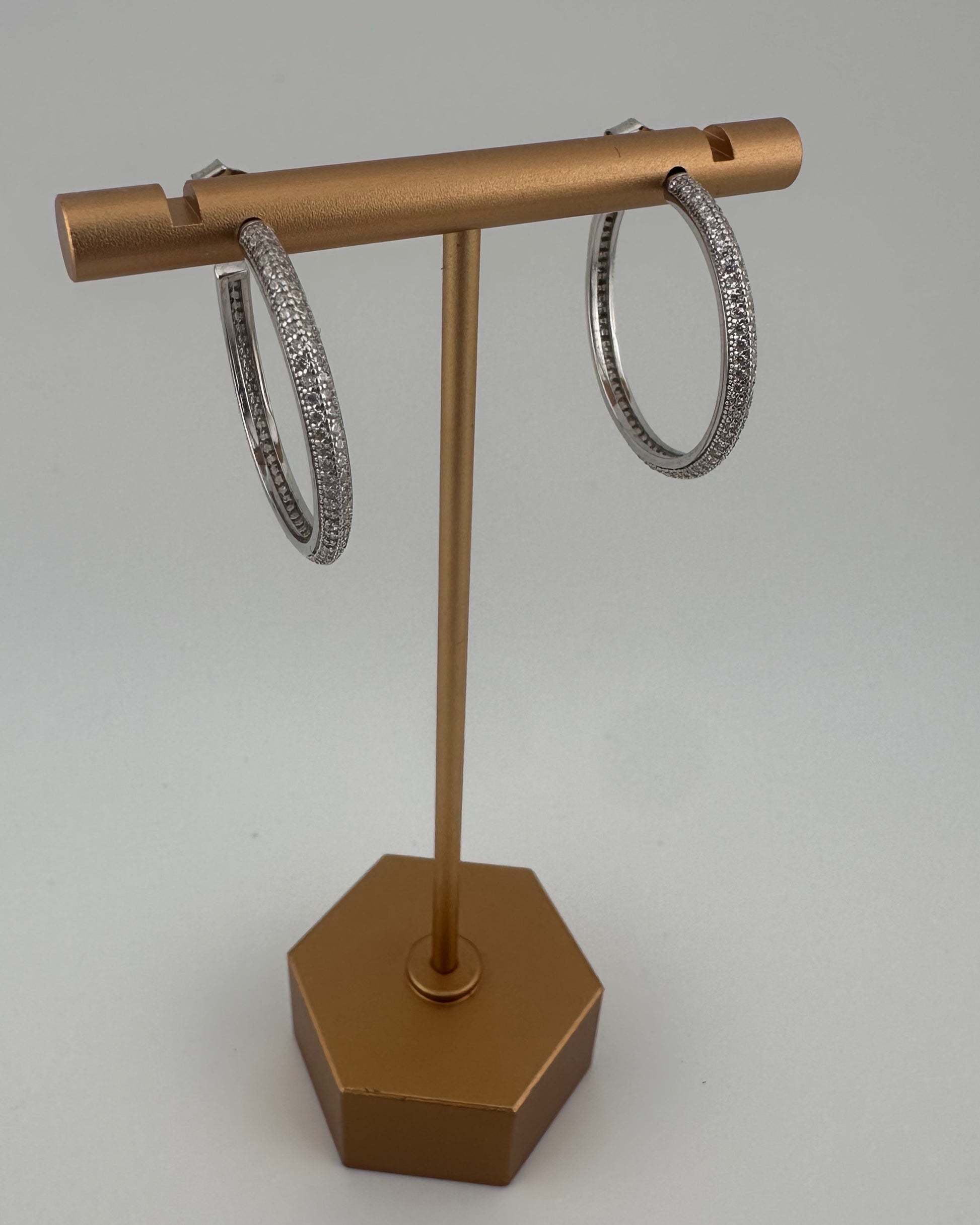 Add a touch of glamour to your jewelry collection with these stunning Silver 925 hoops, adorned with sparkling cubic zirconia (CZ) stones. Crafted from high-quality silver, these hoops feature a classic design that is elevated by the brilliant CZ accents, creating a radiant look that catches the light beautifully. Perfect for everyday wear or special occasions, these earrings effortlessly blend style and versatility. Lightweight and comfortable, they are ideal for making a statement while remaining chic and elegant. Treat yourself or surprise a loved one with these timeless hoops that add a hint of sparkle to any outfit!