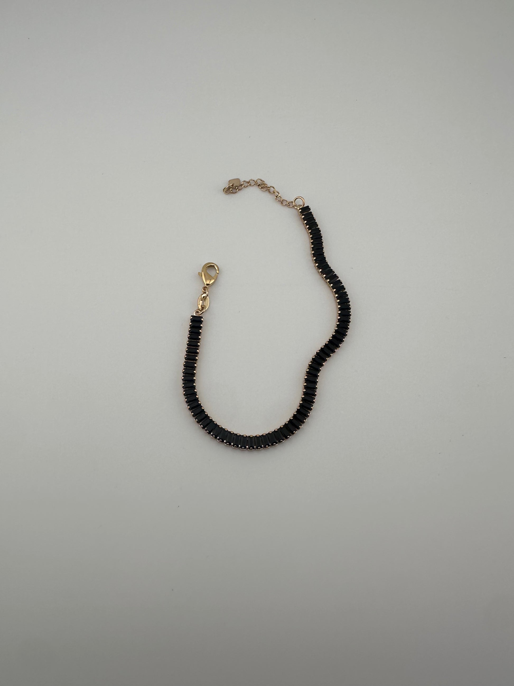 Striking and sophisticated, the Midnight Luxe Bracelet features an array of gleaming black stones set in rich 18k gold-filled metal. This bold yet elegant piece exudes modern glamour and mystery, making it the perfect accessory to elevate any outfit — from chic evenings out to everyday confidence.