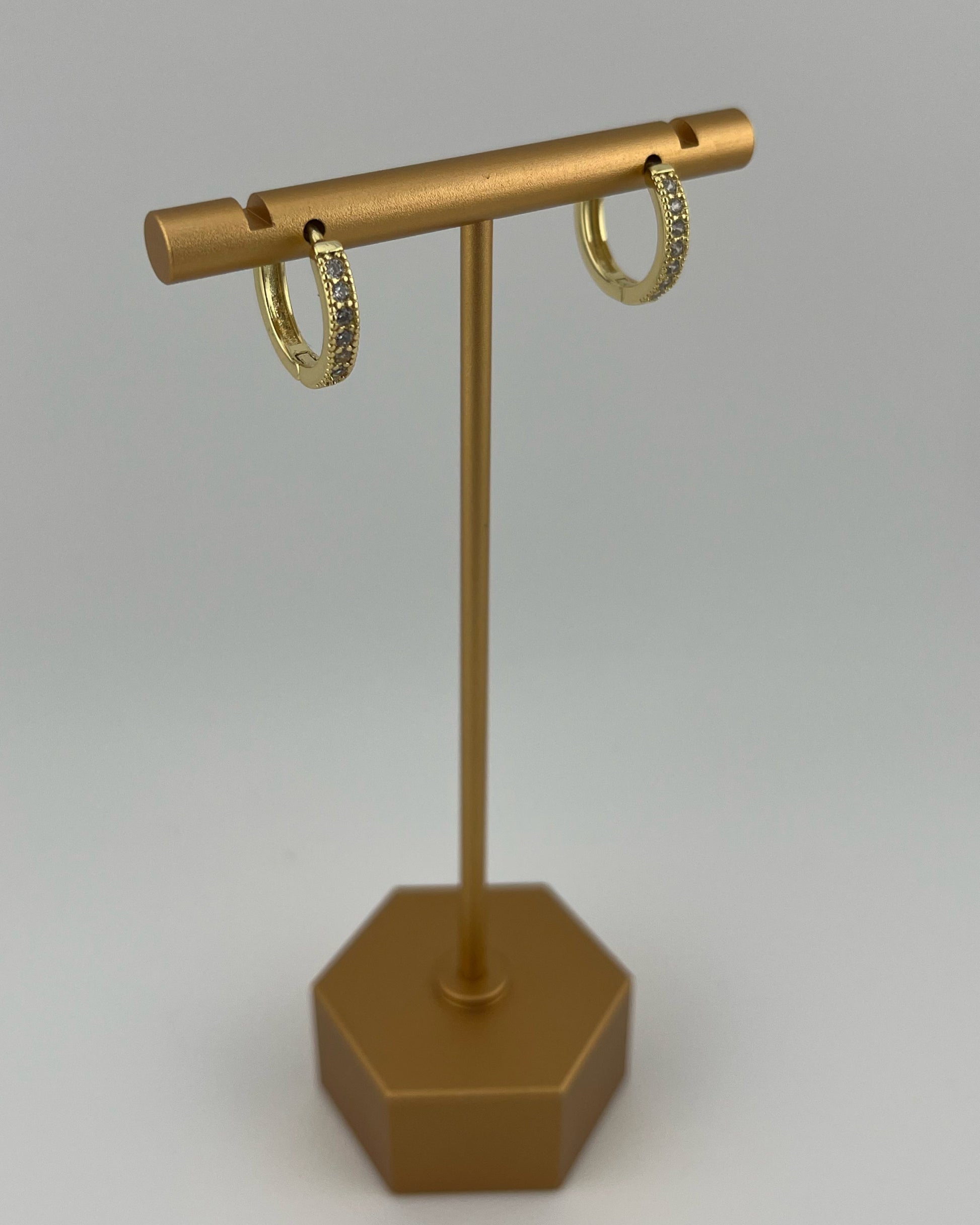 Add a touch of radiant charm to your jewelry collection with the Mini Sparkle CZ Gold-Filled Hoops. These small, delicate hoops are expertly crafted from high-quality gold-filled material, offering a luxurious shine that complements any look. Each hoop is adorned with sparkling cubic zirconia stones, providing just the right amount of shimmer without overwhelming your style. Perfect for everyday wear or as a subtle accent for special occasions, these lightweight earrings are designed for comfort and versatility. Embrace effortless elegance with the Mini Sparkle CZ Gold-Filled Hoops, your go-to accessory for any occasion.