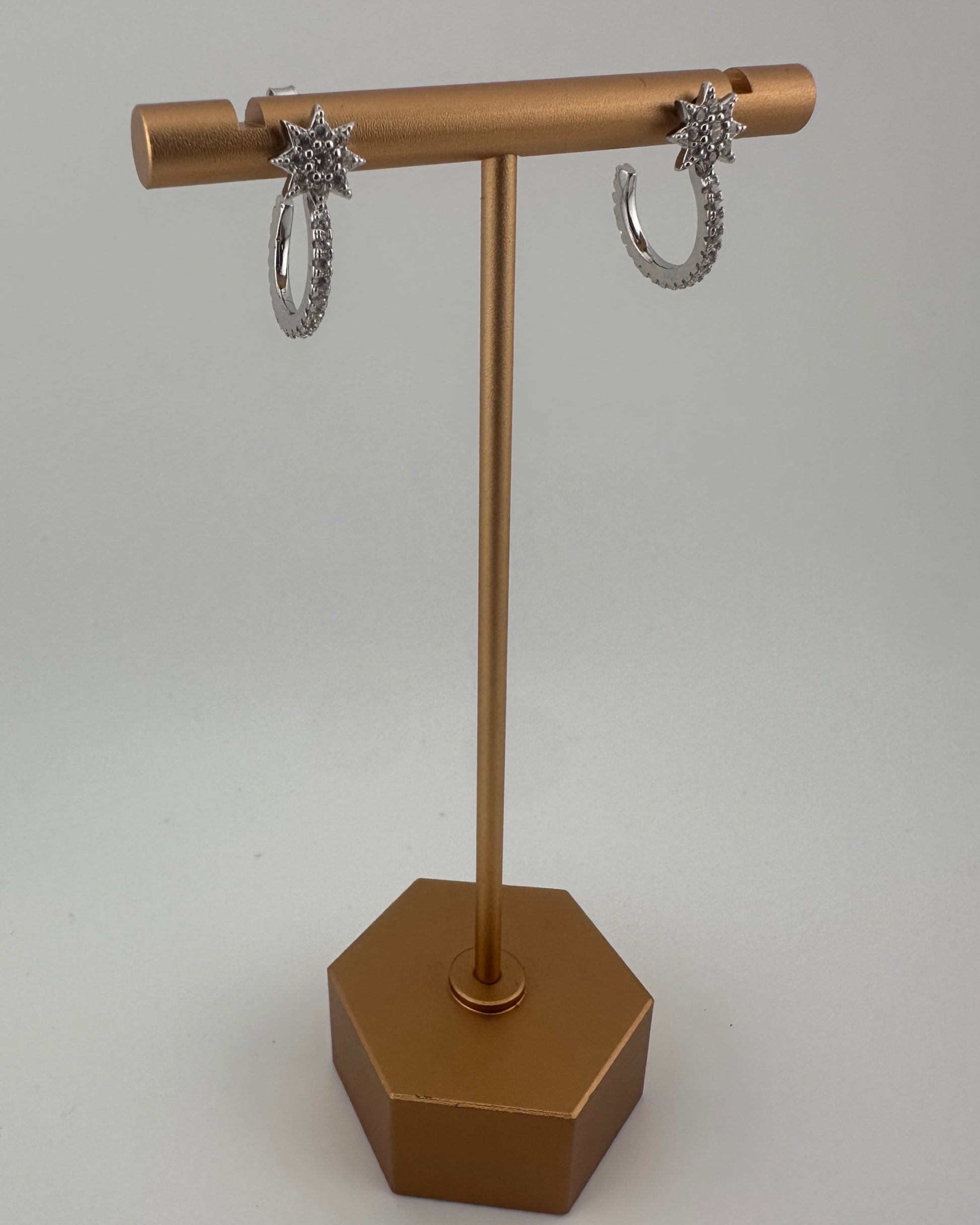 Shine bright with these enchanting Silver 925 north star stud earrings, beautifully accented with sparkling cubic zirconia (CZ) stones. Crafted from high-quality silver, these earrings feature a stunning north star design that symbolizes guidance and hope. The shimmering CZ stones add a touch of brilliance, making them perfect for both everyday wear and special occasions. Lightweight and comfortable, these studs are a timeless addition to any jewelry collection. Treat yourself or gift them to a loved one as a charming reminder to always follow their dreams and reach for the stars!