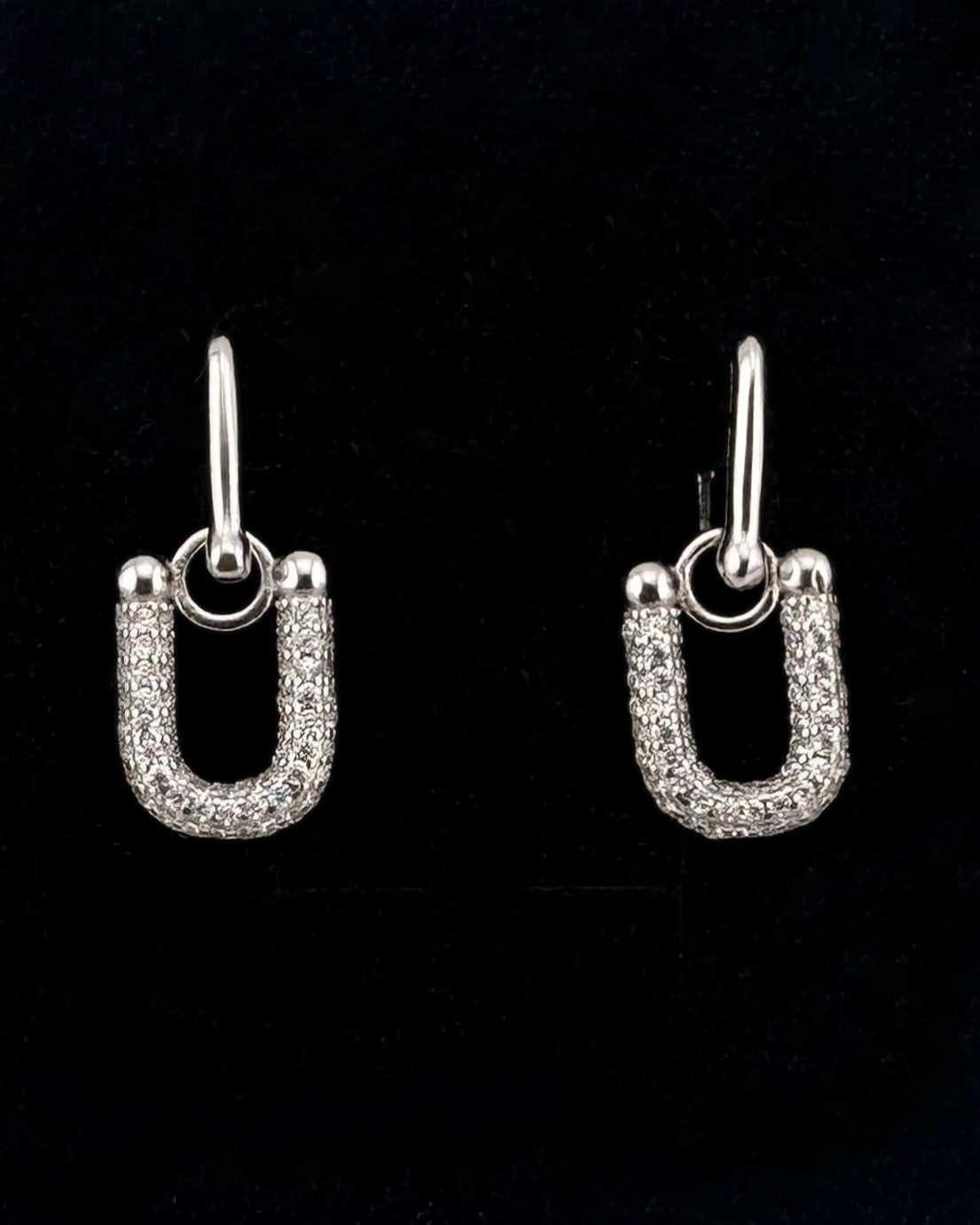 Elevate your style with these stunning Silver 925 paper clip chain dangling earrings, beautifully accented with sparkling cubic zirconia (CZ) stones. Crafted from high-quality silver, these earrings feature a modern paper clip chain design that exudes contemporary elegance. The shimmering CZ stones add a touch of brilliance, making them perfect for both everyday wear and special occasions. Lightweight and comfortable, these earrings move gracefully with you, catching the light and drawing attention to your unique style. Treat yourself or gift them to someone special—these earrings are a versatile addition to any jewelry collection!