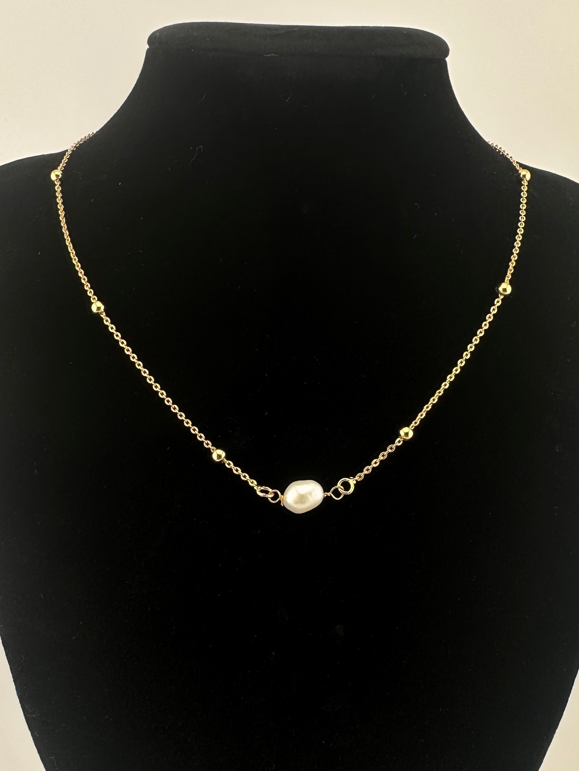 Understated and timeless, the Pearl Essence Necklace showcases a single luminous pearl delicately set in the center of an 18k gold-filled chain. This minimalist design highlights the pearl’s natural beauty, making it perfect for everyday elegance or special occasions. Hypoallergenic and tarnish-resistant, it’s a refined piece that adds a touch of classic charm to any outfit.