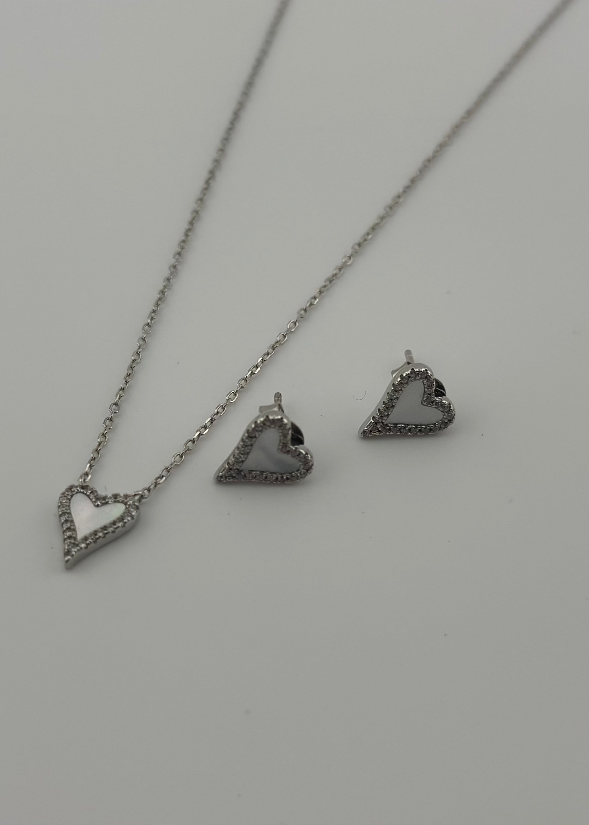 Elegant in its simplicity, the Pure Heart Set features a matching pair of earrings and a necklace, each adorned with a smooth white heart set in radiant 925 sterling silver. Symbolizing love, clarity, and grace, this timeless duo adds a soft, romantic touch to any look — perfect for everyday wear or heartfelt gifting.