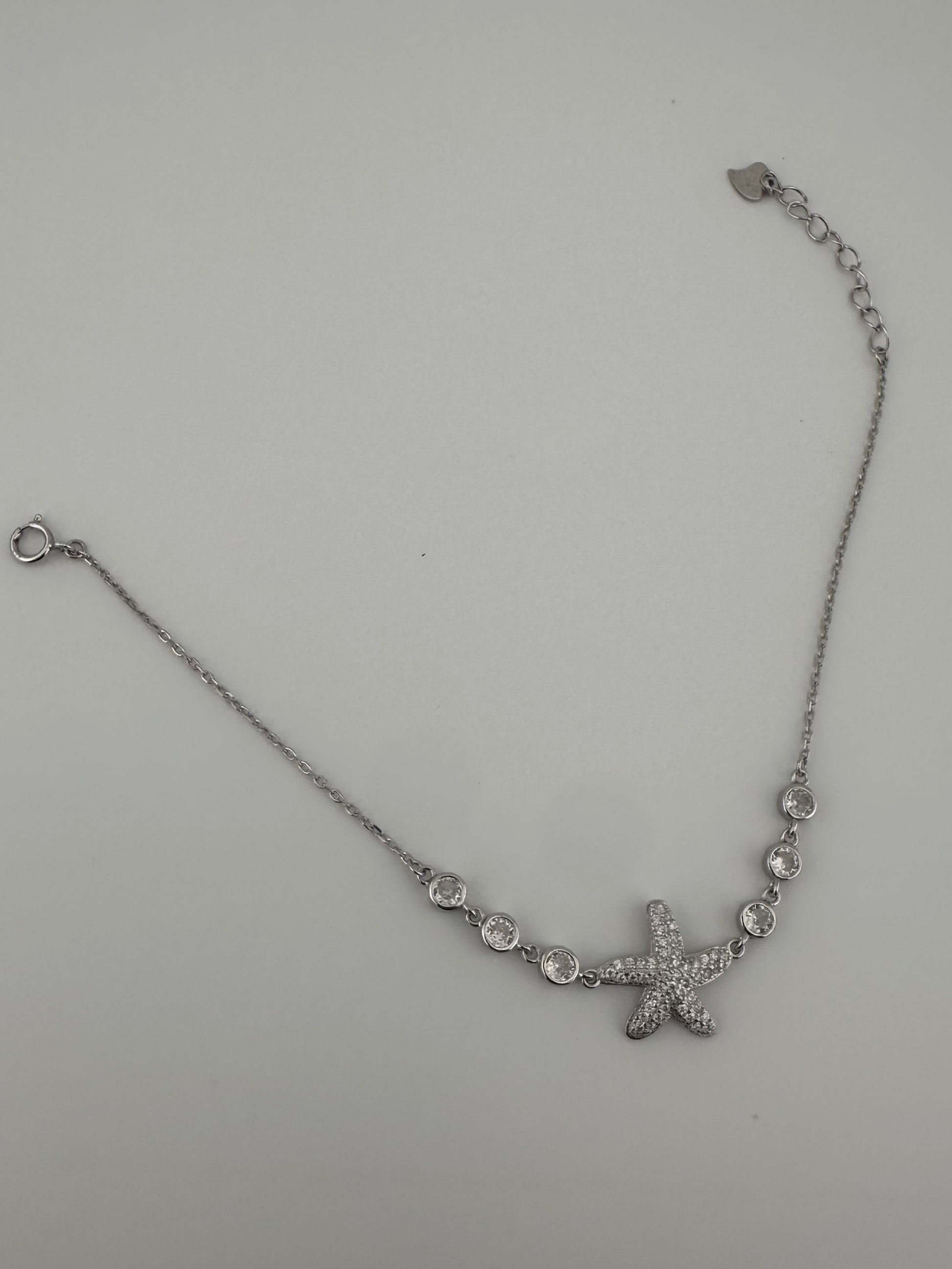 Inspired by the beauty of the ocean, the Starlit Shore Bracelet features a delicate sea star charm adorned with shimmering cubic zirconia, all set in polished 925 sterling silver. Radiating coastal elegance and a touch of sparkle, this bracelet brings a sense of serenity and wanderlust to your everyday style — perfect for sea lovers and dreamers alike.