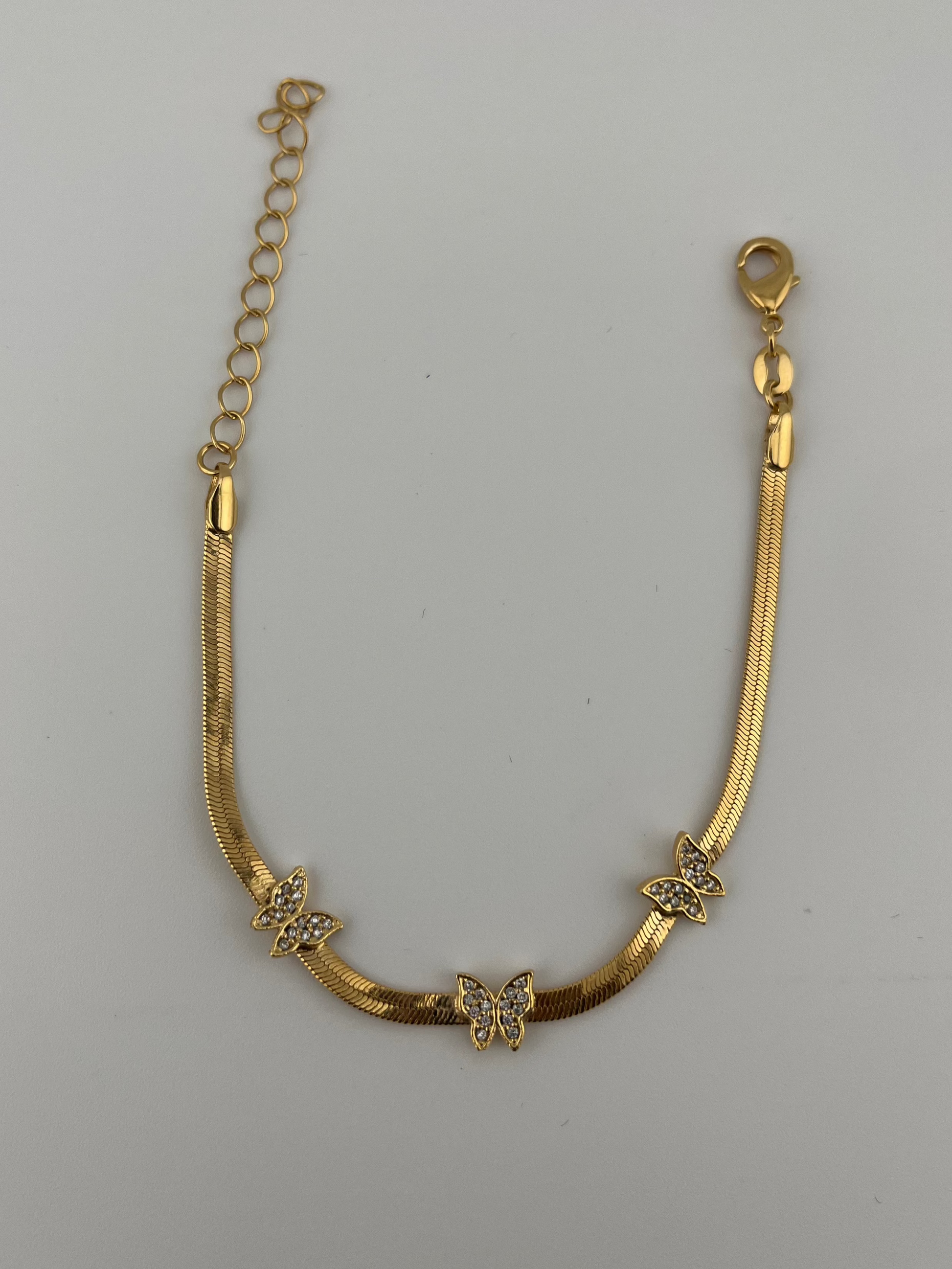 Delicate and enchanting, the Trio of Wings Bracelet showcases three beautifully crafted butterflies in radiant 18k gold-filled metal. Symbolizing transformation, freedom, and beauty, this elegant piece adds a whimsical touch of nature-inspired charm to any outfit — perfect for everyday wear or special moments.