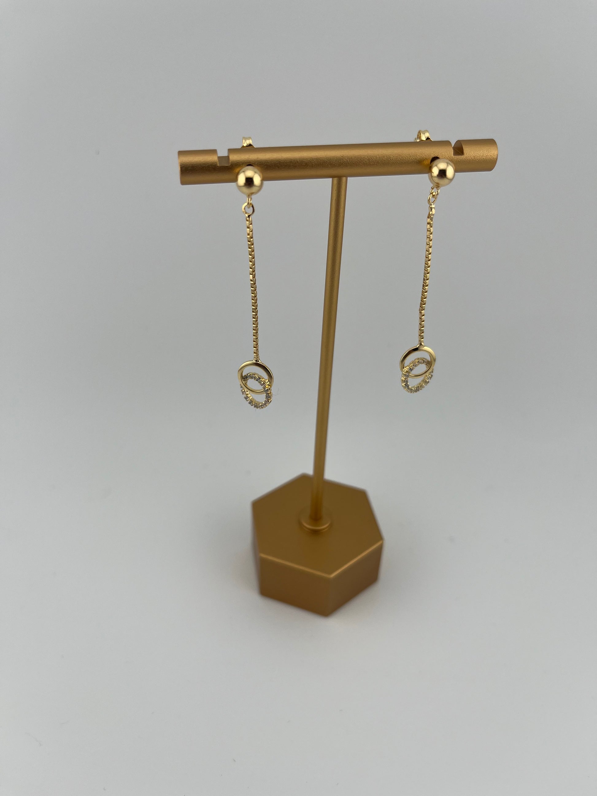 Sleek and sculptural, the Orbit Drop Earrings feature two gracefully stacked circles that create a sense of effortless movement and balance. With their clean lines and modern silhouette, these danglers bring a minimalist yet bold touch to any look — a true statement in simplicity.