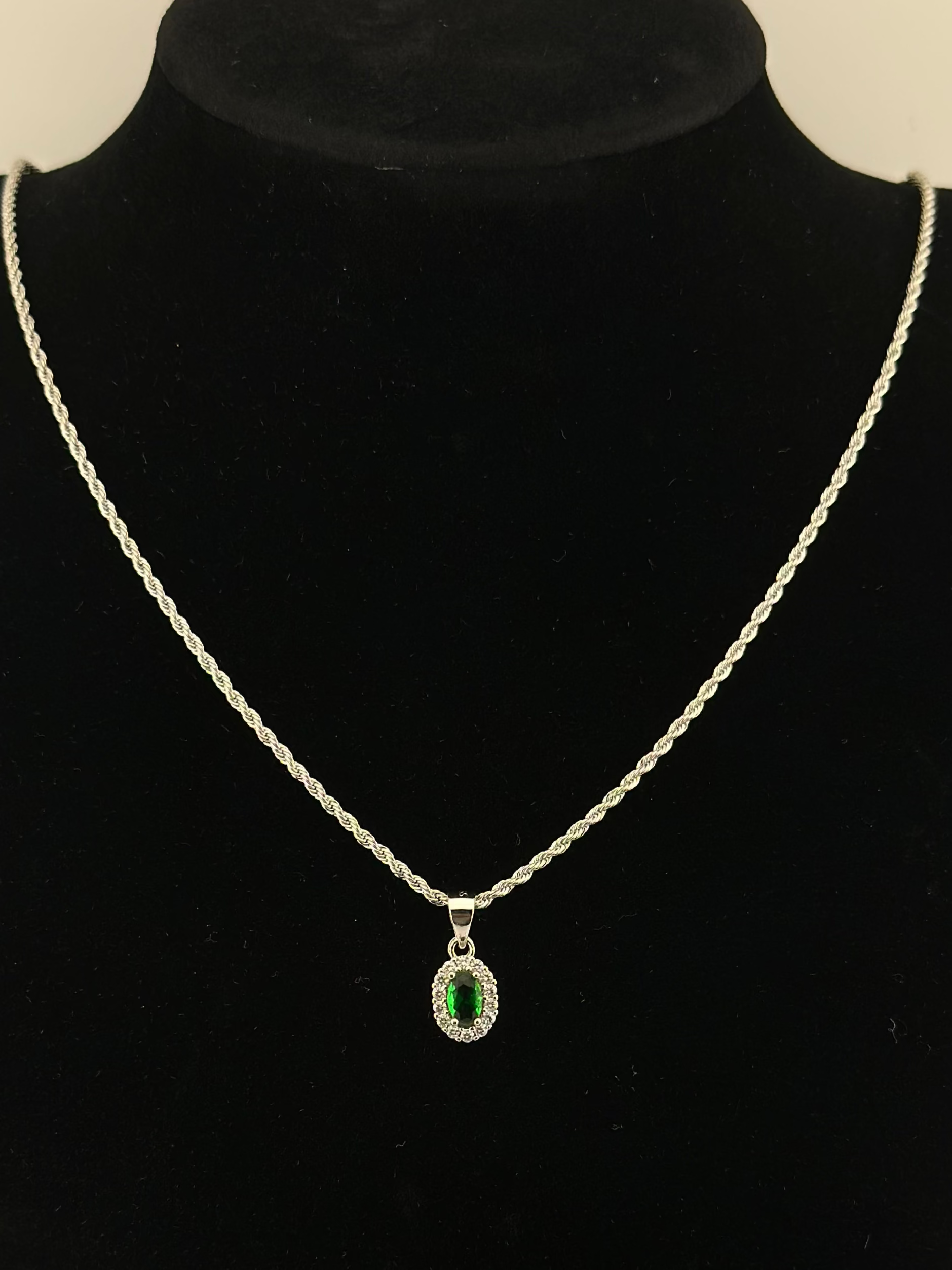 Radiate elegance with Verde Lumina, a stunning Italian 925 silver necklace featuring a vibrant green gemstone centerpiece framed by sparkling cubic zirconia accents. This hypoallergenic piece blends classic craftsmanship with a pop of color, perfect for adding a refined touch to any outfit.